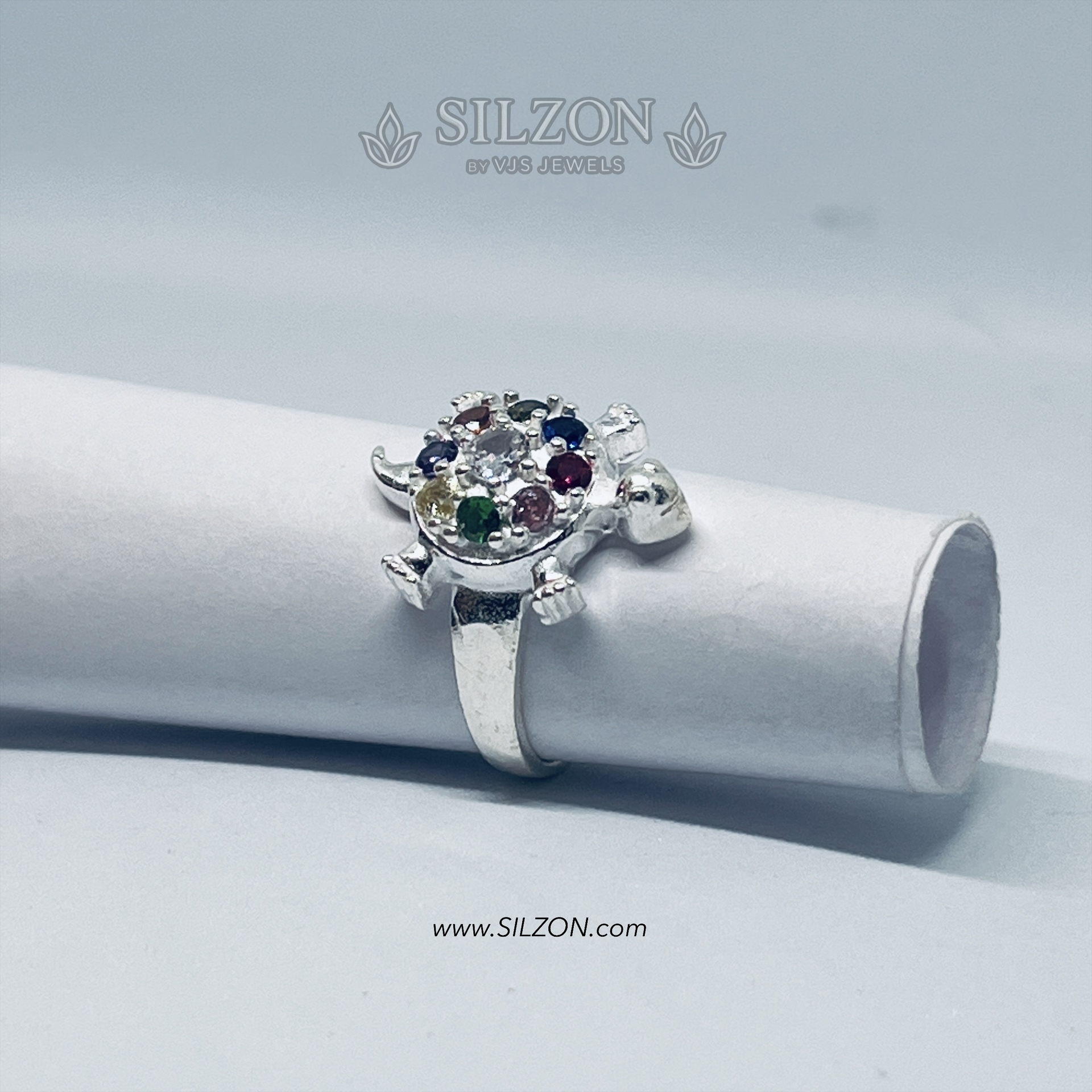 Elevate your style with this adorable turtle-shaped ring, crafted in real silver. Embedded with vibrant multicolor stones, this ring symbolizes protection, longevity, and good luck, making it a thoughtful gift or a lucky charm for yourself. A unique fusion of elegance and spirituality, exclusively from SILZON by VJS Jewels.